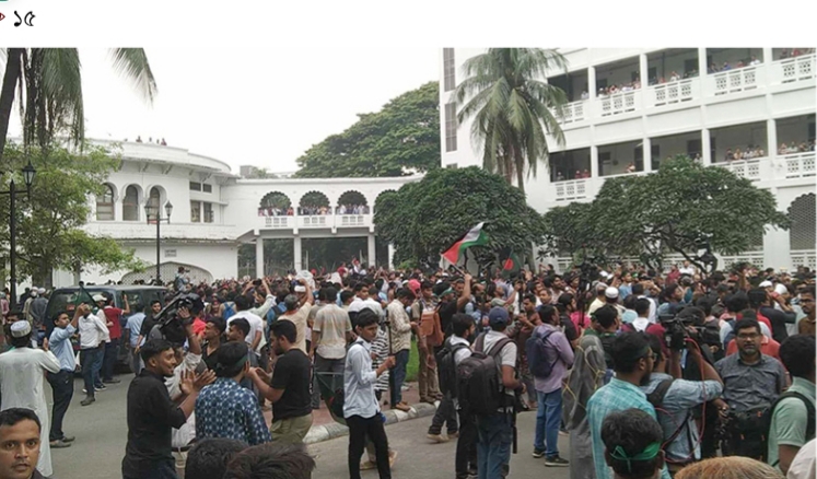 ঢাকা বিশ্ববিদ্যালয়ের সন্ত্রাসবিরোধী রাজু ভাস্কর্যের পাদদেশ থেকে বৈষম্যবিরোধী ছাত্র আন্দোলনের ব্যানারে বিক্ষোভ মিছিল বের হয়ে হাইকোর্ট প্রাঙ্গণে এসে পৌঁছায়।