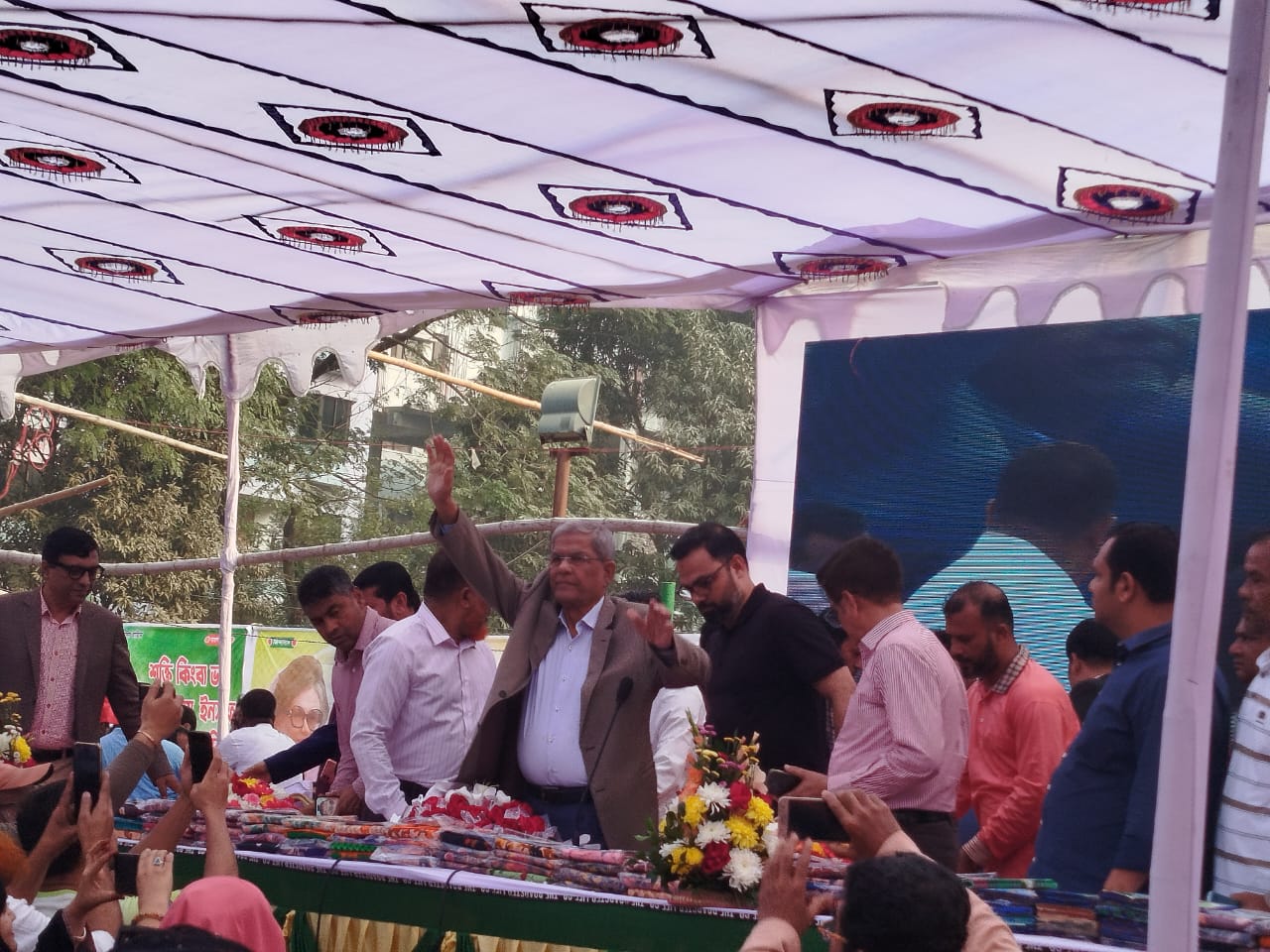অনুষ্ঠান শেষে দরিদ্রের মধ্যে শীতবস্ত্র ও শাড়ি বিতরণ করেন মির্জা ফখরুল ইসলাম আলমগীর।