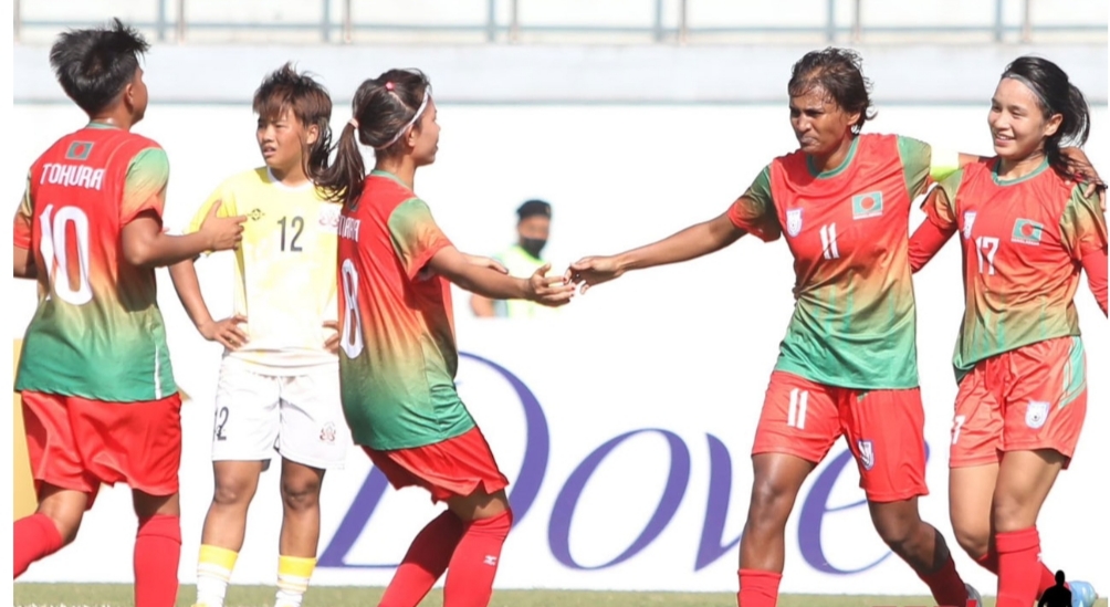 পরে বাংলাদেশের হয়ে সপ্তম গোল করেন ডিফেন্ডার মাসুরা পারভিন। চলতি আসরে দারুণ ছন্দে থাকা এই ডিফেন্ডার কর্ণার থেকে মাথা ছুঁইয়ে করেছেন গোল। ৭-১ গোলের বড় জয় নিয়ে মাঠ ছাড়ে বাংলাদেশ।